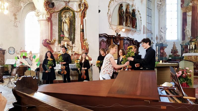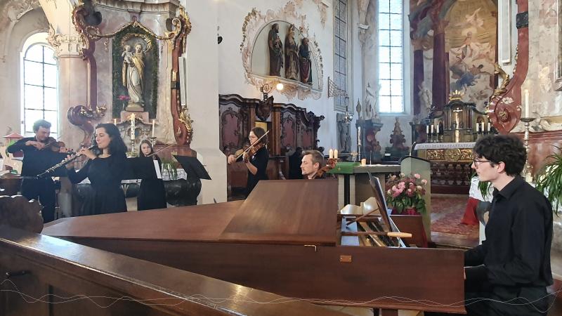 Am Sonntag, 26. Juni verzauberte das rund um unsere beiden neuen Musiklehrerinnen, Frau Kirner und Frau von Flotow, entstandene Ensemble "Concerto danubio" das Publikum mit Musik aus der Zeit von Johann Sebastian Bach. Die barocke St. Nikolaus-Kirche in Scheer bot das passende Ambiente, ein von der evangelischen Kirchengemeinde geliehenes Cembalo sorgte neben den Streichinstrumenten und einer Oboe für den perfekten Klang.