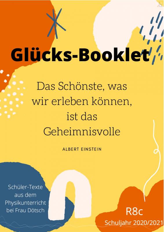 Denn Albert Einstein hat nicht nur über die Relativitätstheorie Überlegungen angestellt und die Formel E = m • c2 aufgeschrieben, er hat auch - so zumindest sagt man ihm nach - zahlreiche Aphorismen zum Thema Glück verfasst. Wir haben uns mit Einsteins Zitaten in der letzten Physikstunde vor den Sommerferien beschäftigt und dabei sind lesenswerte Gedanken der Schüler entstanden, die sie zu Papier gebracht haben. Diese Texte wurden in kleinen Booklets zusammengefasst. Seht sie euch an - vielleicht findet der ein oder andere darin eine gute Anregung. Ein Klick aufs Cover öffnet das Booklet.